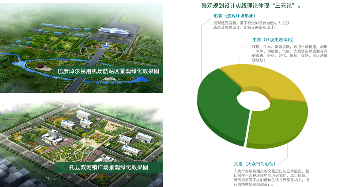 生態(tài)——(環(huán)境生態(tài)綠化)——環(huán)境、生態(tài)、資源層面,包括土地利用,地形,水體、動植物、氣候、光照等自然資源在內(nèi)的調(diào)查、分析、評估、規(guī)劃、保護(hù),即大地景觀規(guī)劃;